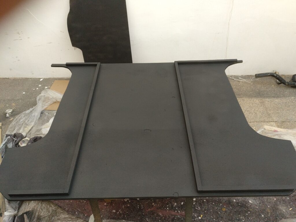 He pintado toda la madera del mueble con la misma pintura Raptor Bed Liner Negro que utilizé por el exterior, para la maxima resistencia al rallado.